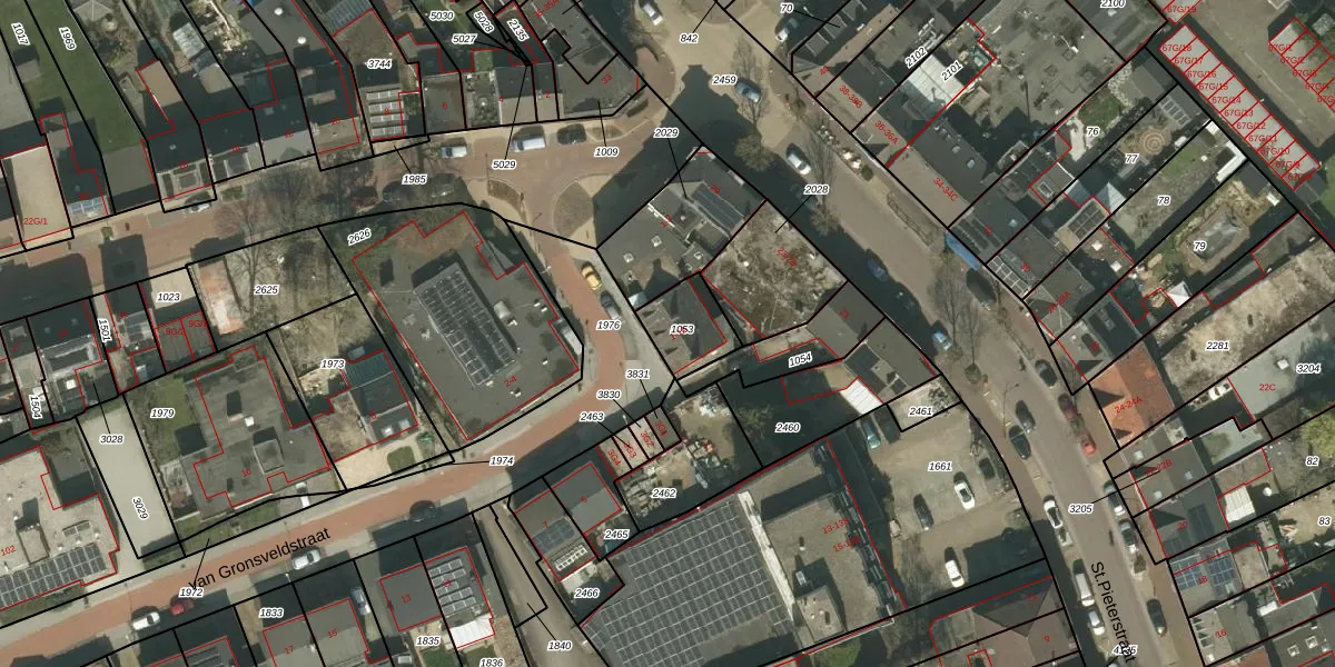 van Gronsveldstraat 1-A is gelegen op kadastraal perceel KRD00G1053. Deze kadastrale aanduiding is uniek en wordt gebruikt door het Kadaster om eigendomsrechten en andere zakelijke rechten vast te leggen. Het perceel maakt onderdeel uit van de kadastrale gemeente Kerkrade.