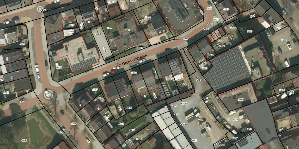 van Gronsveldstraat 15 is gelegen op kadastraal perceel KRD00G1834. Deze kadastrale aanduiding is uniek en wordt gebruikt door het Kadaster om eigendomsrechten en andere zakelijke rechten vast te leggen. Het perceel maakt onderdeel uit van de kadastrale gemeente Kerkrade.