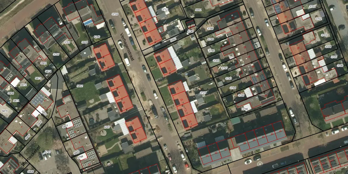 Het perceel waarop Verhagenstraat 13 staat heeft een oppervlakte van 3130 m². Dit is een zeer groot perceel. De perceeloppervlakte wordt geregistreerd door het Kadaster. Gedetailleerde informatie over de maten van dit perceel kunt u vinden in het rapport Kadastrale kaart met maatvoering van Verhagenstraat 13.