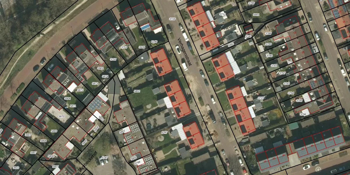 Het perceel waarop Verhagenstraat 6 staat heeft een oppervlakte van 3426 m². Dit is een zeer groot perceel. De perceeloppervlakte wordt geregistreerd door het Kadaster. Gedetailleerde informatie over de maten van dit perceel kunt u vinden in het rapport Kadastrale kaart met maatvoering van Verhagenstraat 6.