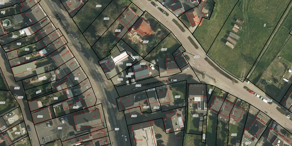 Vinkerdwarsstraat 7 is gelegen op kadastraal perceel KRD00L2025. Deze kadastrale aanduiding is uniek en wordt gebruikt door het Kadaster om eigendomsrechten en andere zakelijke rechten vast te leggen. Het perceel maakt onderdeel uit van de kadastrale gemeente Kerkrade.