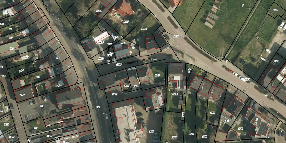 Vinkerdwarsstraat 8-A is gelegen op kadastraal perceel KRD00L1047. Deze kadastrale aanduiding is uniek en wordt gebruikt door het Kadaster om eigendomsrechten en andere zakelijke rechten vast te leggen. Het perceel maakt onderdeel uit van de kadastrale gemeente Kerkrade.