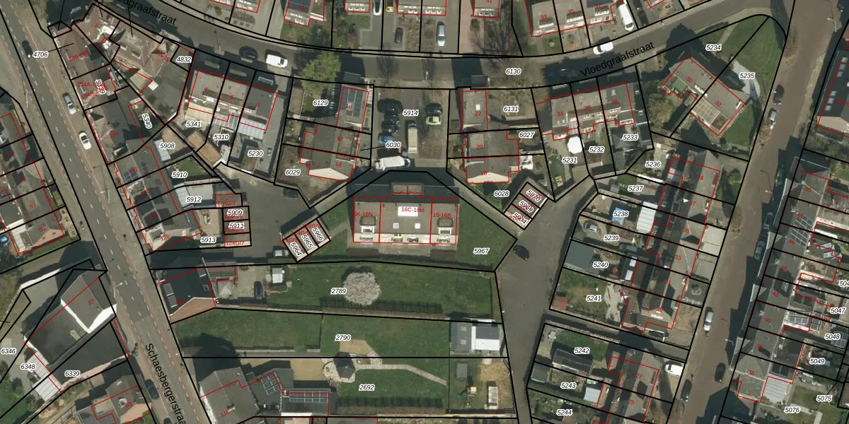 Vloedgraafstraat 16-D is gelegen op kadastraal perceel KRD00A5967. Deze kadastrale aanduiding is uniek en wordt gebruikt door het Kadaster om eigendomsrechten en andere zakelijke rechten vast te leggen. Het perceel maakt onderdeel uit van de kadastrale gemeente Kerkrade.