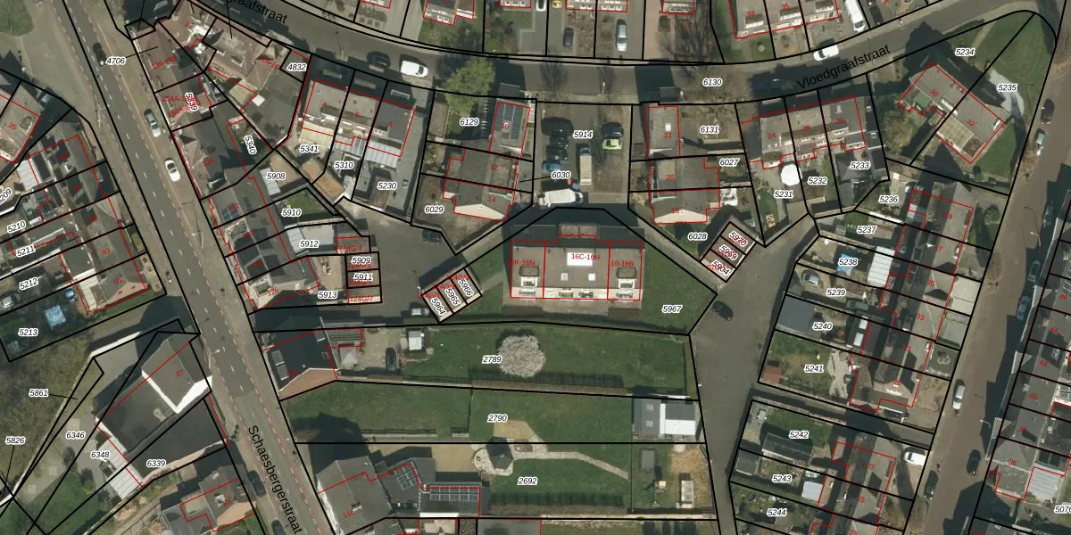 Vloedgraafstraat 16-N is gelegen op kadastraal perceel KRD00A5967. Deze kadastrale aanduiding is uniek en wordt gebruikt door het Kadaster om eigendomsrechten en andere zakelijke rechten vast te leggen. Het perceel maakt onderdeel uit van de kadastrale gemeente Kerkrade.