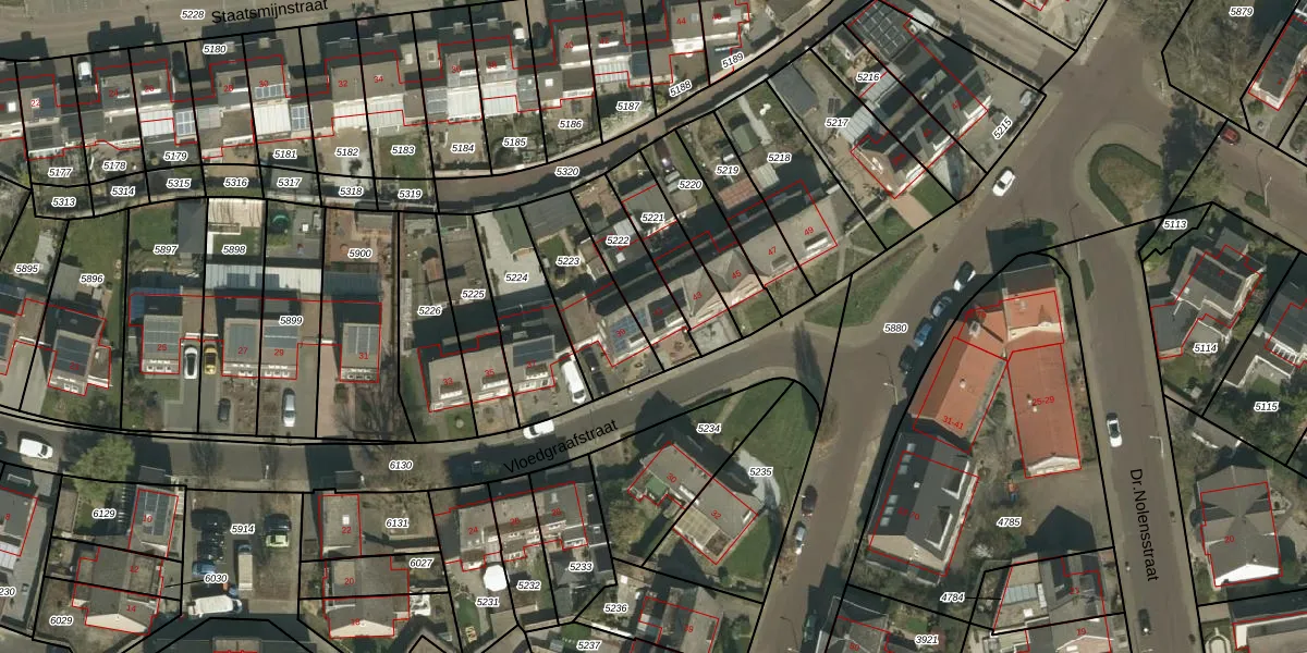 Vloedgraafstraat 41 is gelegen op kadastraal perceel KRD00A5222. Deze kadastrale aanduiding is uniek en wordt gebruikt door het Kadaster om eigendomsrechten en andere zakelijke rechten vast te leggen. Het perceel maakt onderdeel uit van de kadastrale gemeente Kerkrade.