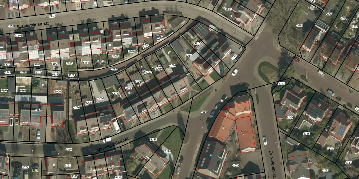 Vloedgraafstraat 49 is gelegen op kadastraal perceel KRD00A5218. Deze kadastrale aanduiding is uniek en wordt gebruikt door het Kadaster om eigendomsrechten en andere zakelijke rechten vast te leggen. Het perceel maakt onderdeel uit van de kadastrale gemeente Kerkrade.