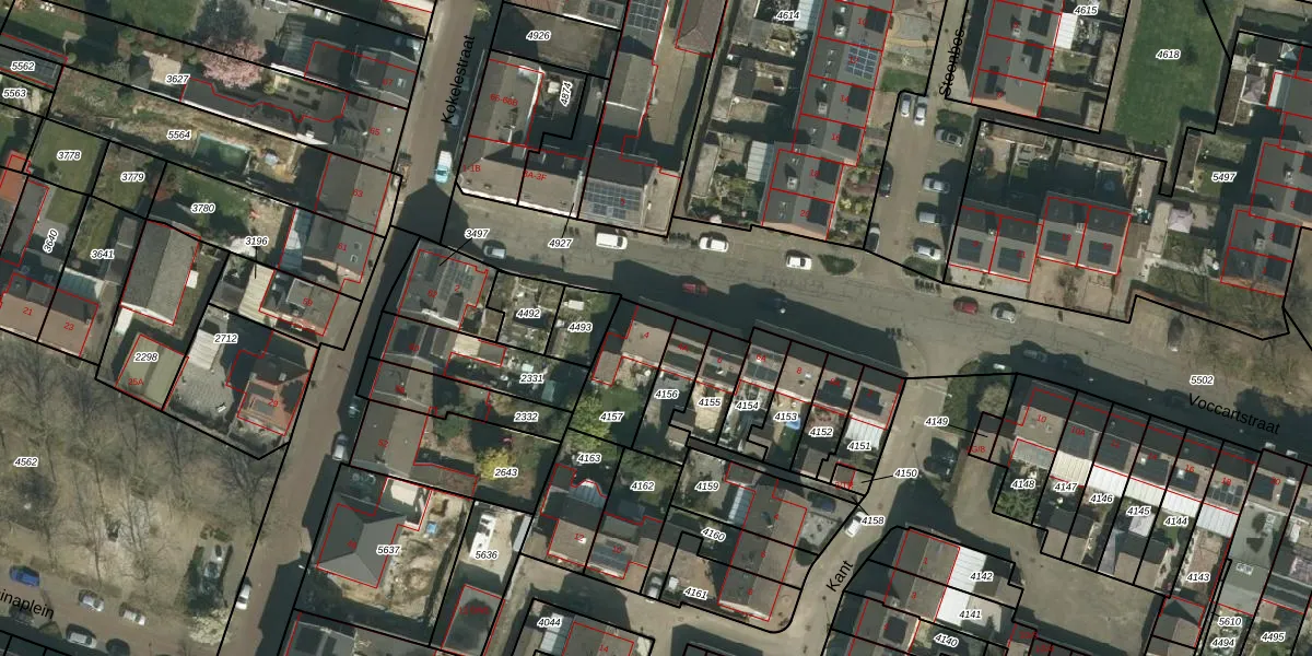 Voccartstraat 4 is gelegen op kadastraal perceel KRD00F4157. Deze kadastrale aanduiding is uniek en wordt gebruikt door het Kadaster om eigendomsrechten en andere zakelijke rechten vast te leggen. Het perceel maakt onderdeel uit van de kadastrale gemeente Kerkrade.