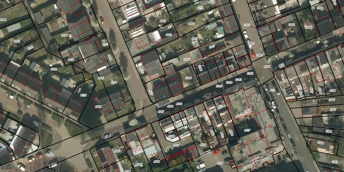 Vroenstraat 28-A is gelegen op kadastraal perceel KRD00E5146. Deze kadastrale aanduiding is uniek en wordt gebruikt door het Kadaster om eigendomsrechten en andere zakelijke rechten vast te leggen. Het perceel maakt onderdeel uit van de kadastrale gemeente Kerkrade.
