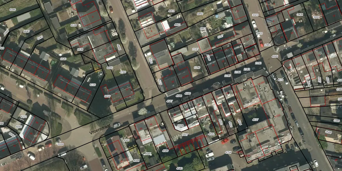 Vroenstraat 30 is gelegen op kadastraal perceel KRD00E4129. Deze kadastrale aanduiding is uniek en wordt gebruikt door het Kadaster om eigendomsrechten en andere zakelijke rechten vast te leggen. Het perceel maakt onderdeel uit van de kadastrale gemeente Kerkrade.