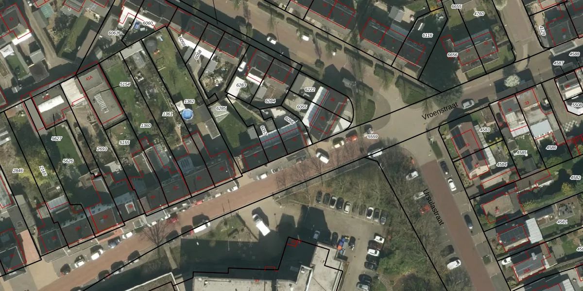 Vroenstraat 42 is gelegen op kadastraal perceel KRD00E6056. Deze kadastrale aanduiding is uniek en wordt gebruikt door het Kadaster om eigendomsrechten en andere zakelijke rechten vast te leggen. Het perceel maakt onderdeel uit van de kadastrale gemeente Kerkrade.