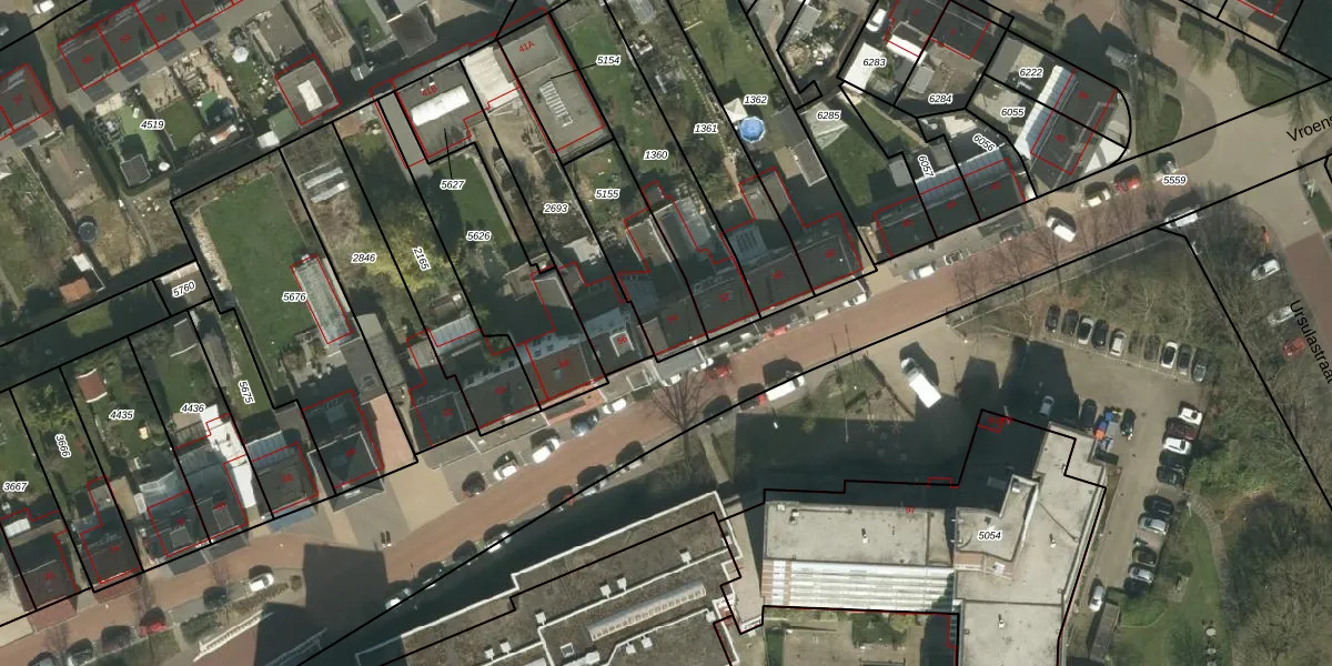 Het perceel waarop Vroenstraat 54 staat heeft een oppervlakte van 284 m². Dit is een middelgroot perceel. De perceeloppervlakte wordt geregistreerd door het Kadaster. Gedetailleerde informatie over de maten van dit perceel kunt u vinden in het rapport Kadastrale kaart met maatvoering van Vroenstraat 54.