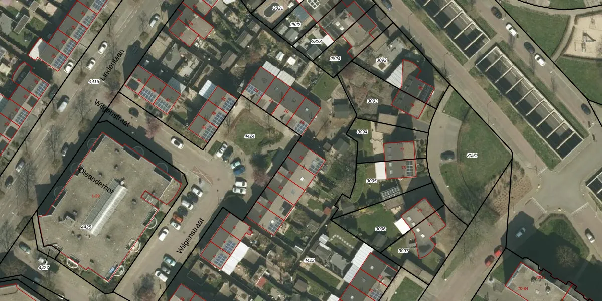 Het perceel waarop Wilgenstraat 16 staat heeft een oppervlakte van 6064 m². Dit is een zeer groot perceel. De perceeloppervlakte wordt geregistreerd door het Kadaster. Gedetailleerde informatie over de maten van dit perceel kunt u vinden in het rapport Kadastrale kaart met maatvoering van Wilgenstraat 16.