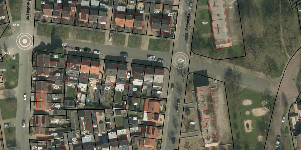 Winricusstraat 11 is gelegen op kadastraal perceel KRD00H516. Deze kadastrale aanduiding is uniek en wordt gebruikt door het Kadaster om eigendomsrechten en andere zakelijke rechten vast te leggen. Het perceel maakt onderdeel uit van de kadastrale gemeente Kerkrade.