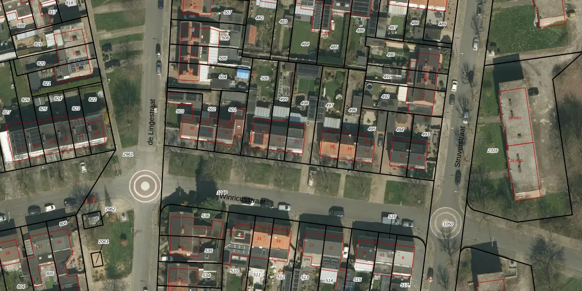 Winricusstraat 20 is gelegen op kadastraal perceel KRD00H498. Deze kadastrale aanduiding is uniek en wordt gebruikt door het Kadaster om eigendomsrechten en andere zakelijke rechten vast te leggen. Het perceel maakt onderdeel uit van de kadastrale gemeente Kerkrade.
