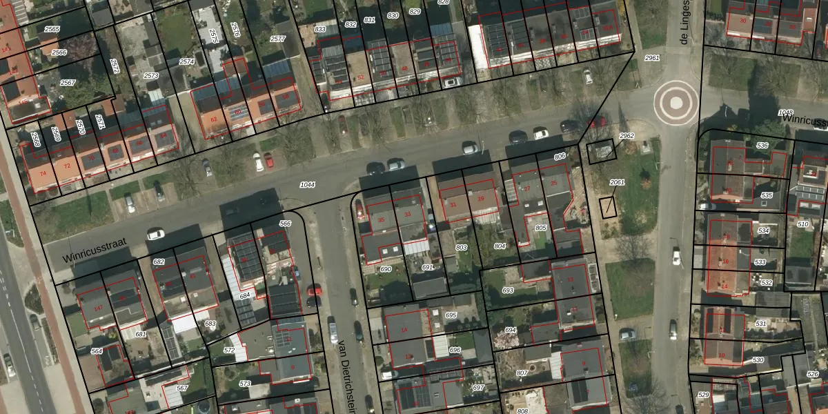 Het perceel waarop Winricusstraat 33 staat heeft een oppervlakte van 264 m². Dit is een middelgroot perceel. De perceeloppervlakte wordt geregistreerd door het Kadaster. Gedetailleerde informatie over de maten van dit perceel kunt u vinden in het rapport Kadastrale kaart met maatvoering van Winricusstraat 33.