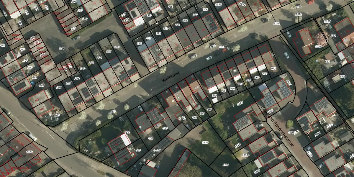 Wolfsweg 10 is gelegen op kadastraal perceel KRD00P548. Deze kadastrale aanduiding is uniek en wordt gebruikt door het Kadaster om eigendomsrechten en andere zakelijke rechten vast te leggen. Het perceel maakt onderdeel uit van de kadastrale gemeente Kerkrade.