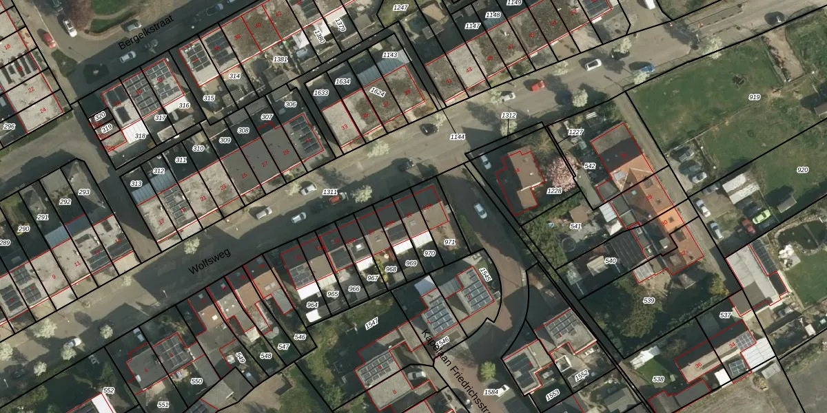 Wolfsweg 22 is gelegen op kadastraal perceel KRD00P970. Deze kadastrale aanduiding is uniek en wordt gebruikt door het Kadaster om eigendomsrechten en andere zakelijke rechten vast te leggen. Het perceel maakt onderdeel uit van de kadastrale gemeente Kerkrade.