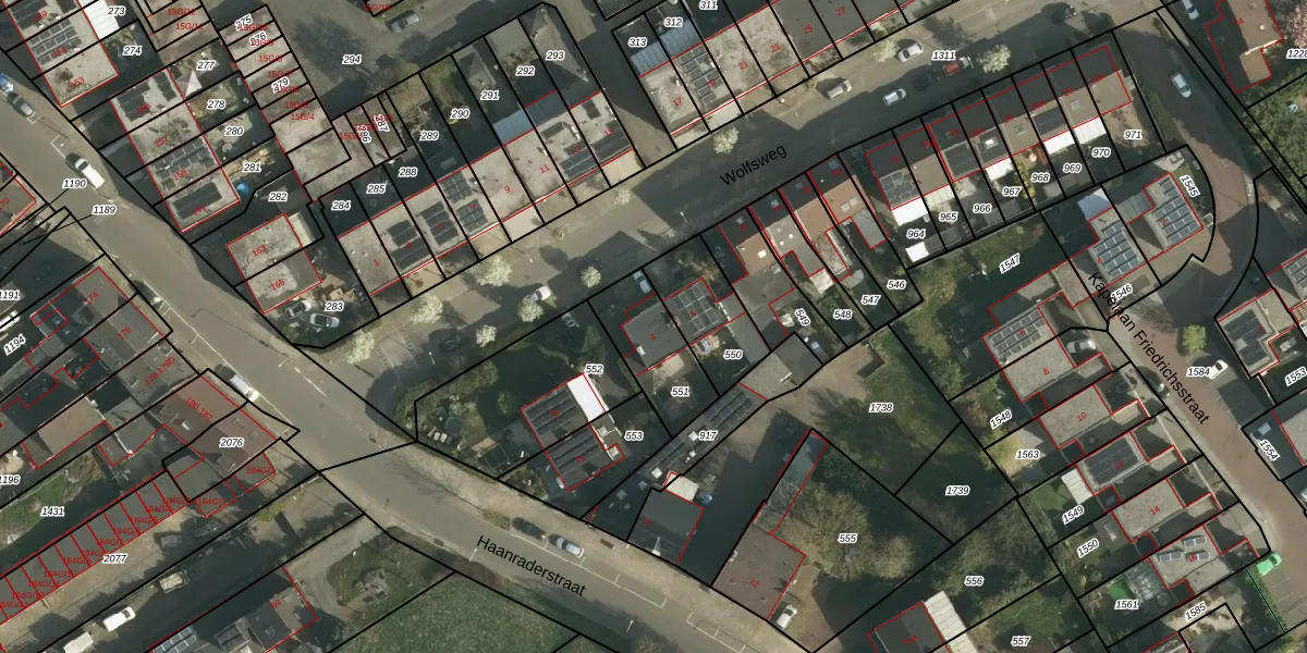 Het perceel waarop Wolfsweg 4 staat heeft een oppervlakte van 228 m². Dit is een middelgroot perceel. De perceeloppervlakte wordt geregistreerd door het Kadaster. Gedetailleerde informatie over de maten van dit perceel kunt u vinden in het rapport Kadastrale kaart met maatvoering van Wolfsweg 4.