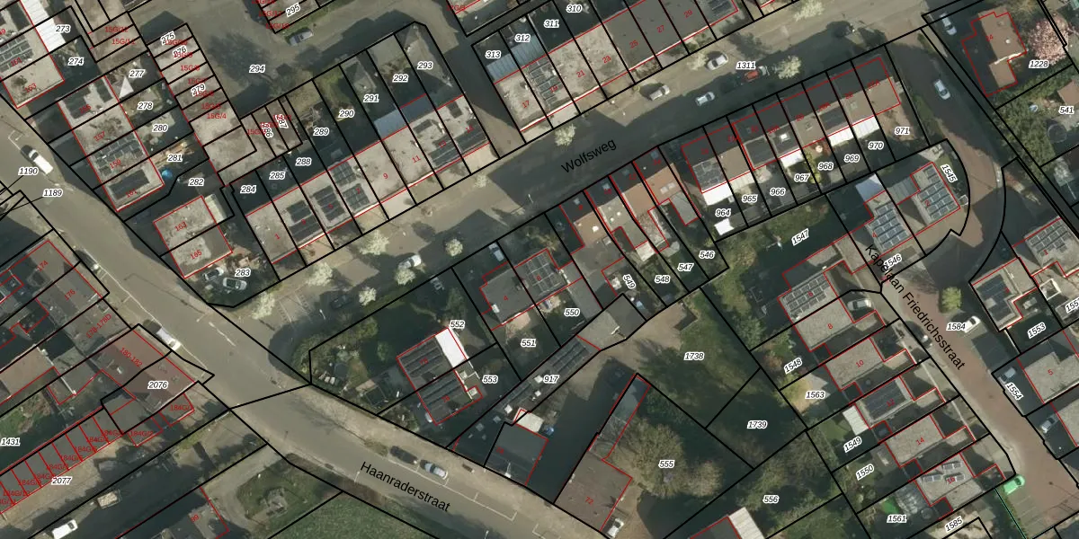 Wolfsweg 6 is gelegen op kadastraal perceel KRD00P550. Deze kadastrale aanduiding is uniek en wordt gebruikt door het Kadaster om eigendomsrechten en andere zakelijke rechten vast te leggen. Het perceel maakt onderdeel uit van de kadastrale gemeente Kerkrade.