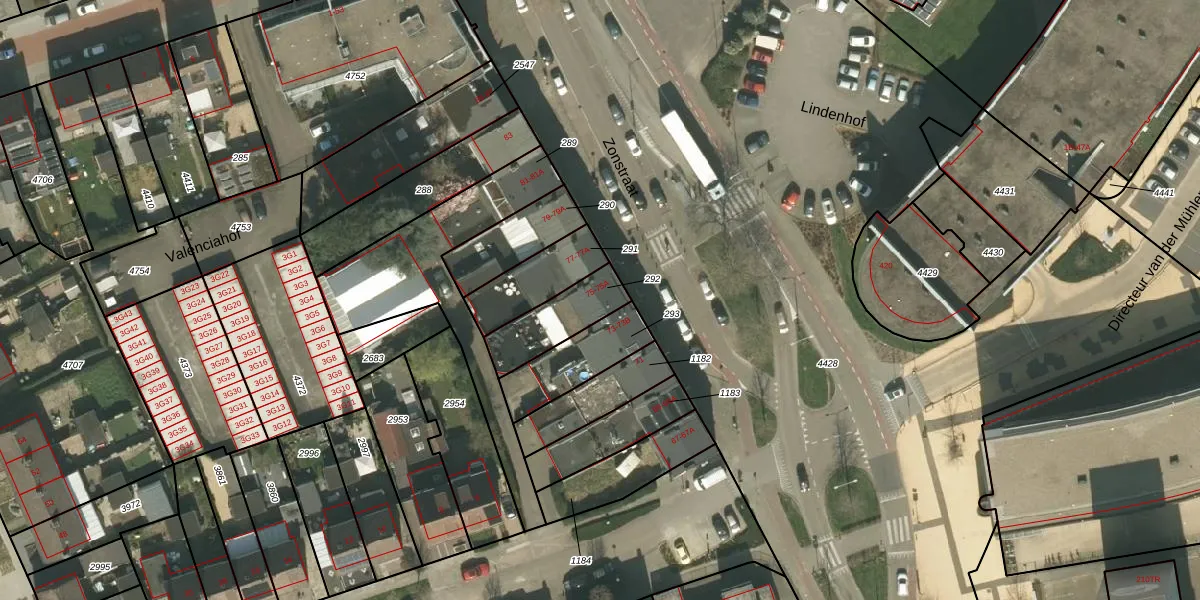 Zonstraat 75 is gelegen op kadastraal perceel KRD00G292. Deze kadastrale aanduiding is uniek en wordt gebruikt door het Kadaster om eigendomsrechten en andere zakelijke rechten vast te leggen. Het perceel maakt onderdeel uit van de kadastrale gemeente Kerkrade.