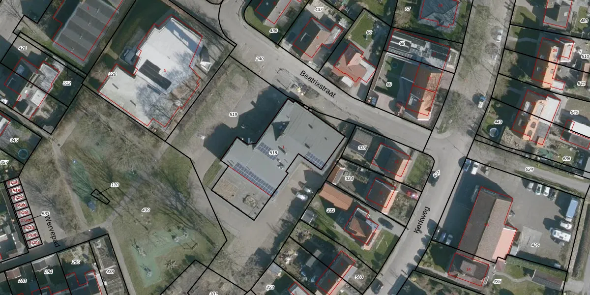 Beatrixstraat 1 is gelegen op kadastraal perceel MDS01C518. Deze kadastrale aanduiding is uniek en wordt gebruikt door het Kadaster om eigendomsrechten en andere zakelijke rechten vast te leggen. Het perceel maakt onderdeel uit van de kadastrale gemeente Middenschouwen.