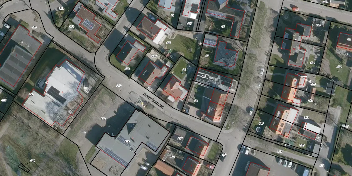 Het perceel waarop Beatrixstraat 2 staat heeft een oppervlakte van 400 m². Dit is een groot perceel. De perceeloppervlakte wordt geregistreerd door het Kadaster. Gedetailleerde informatie over de maten van dit perceel kunt u vinden in het rapport Kadastrale kaart met maatvoering van Beatrixstraat 2.