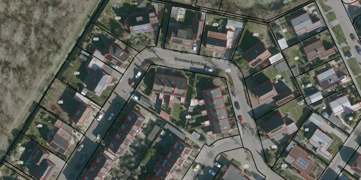 Brieskerkestraat 9 is gelegen op kadastraal perceel MDS01C379. Deze kadastrale aanduiding is uniek en wordt gebruikt door het Kadaster om eigendomsrechten en andere zakelijke rechten vast te leggen. Het perceel maakt onderdeel uit van de kadastrale gemeente Middenschouwen.