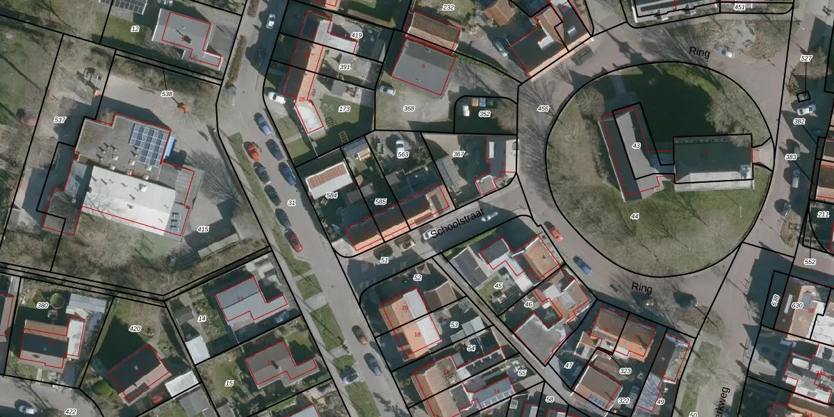 Gebruik de zoekbalk of klik op een perceel voor informatie over de adressen binnen dit perceel.