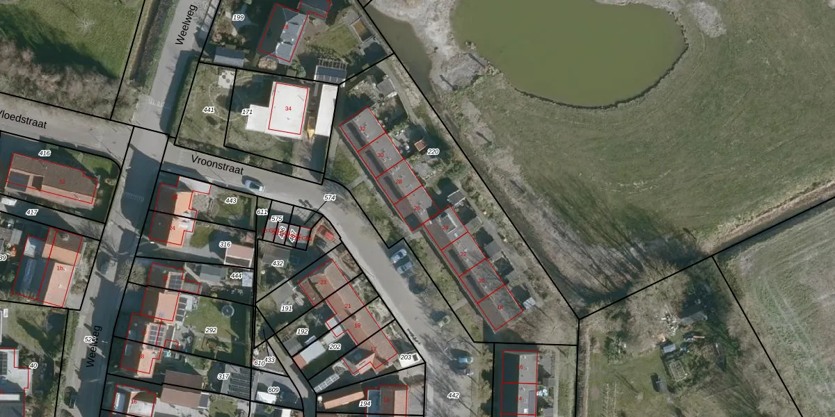 Het perceel waarop Vroonstraat 26 staat heeft een oppervlakte van 1910 m². Dit is een zeer groot perceel. De perceeloppervlakte wordt geregistreerd door het Kadaster. Gedetailleerde informatie over de maten van dit perceel kunt u vinden in het rapport Kadastrale kaart met maatvoering van Vroonstraat 26.