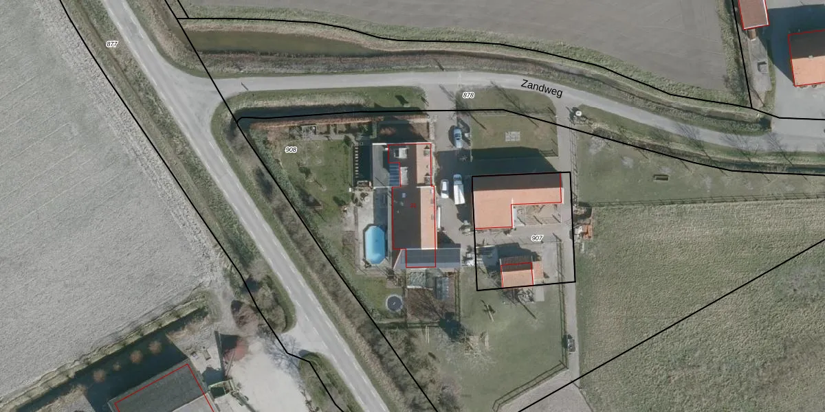 Het perceel waarop Zandweg 21 staat heeft een oppervlakte van 5980 m². Dit is een zeer groot perceel. De perceeloppervlakte wordt geregistreerd door het Kadaster. Gedetailleerde informatie over de maten van dit perceel kunt u vinden in het rapport Kadastrale kaart met maatvoering van Zandweg 21.