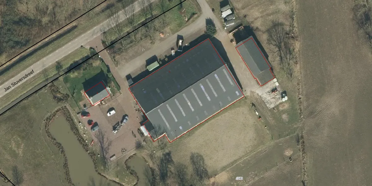 Het perceel waarop Jan Stuversdreef 1 staat heeft een oppervlakte van 3,5 ha. Dit is een zeer groot perceel. De perceeloppervlakte wordt geregistreerd door het Kadaster. Gedetailleerde informatie over de maten van dit perceel kunt u vinden in het rapport Kadastrale kaart met maatvoering van Jan Stuversdreef 1.