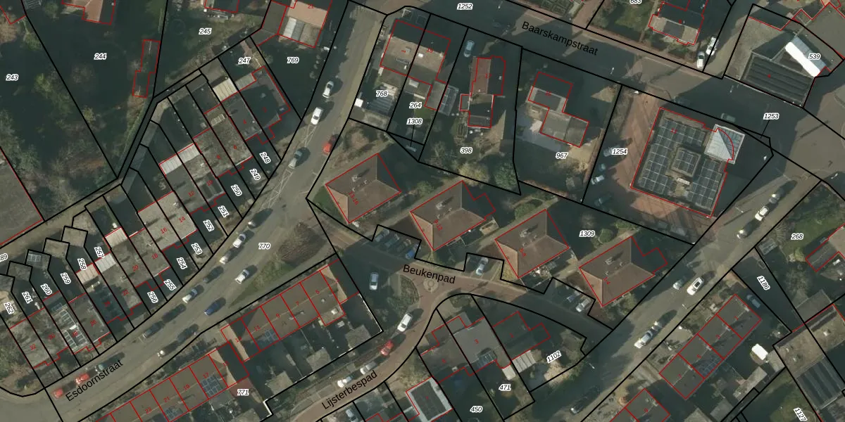 Het perceel waarop Beukenpad 10 staat heeft een oppervlakte van 1780 m². Dit is een zeer groot perceel. De perceeloppervlakte wordt geregistreerd door het Kadaster. Gedetailleerde informatie over de maten van dit perceel kunt u vinden in het rapport Kadastrale kaart met maatvoering van Beukenpad 10.