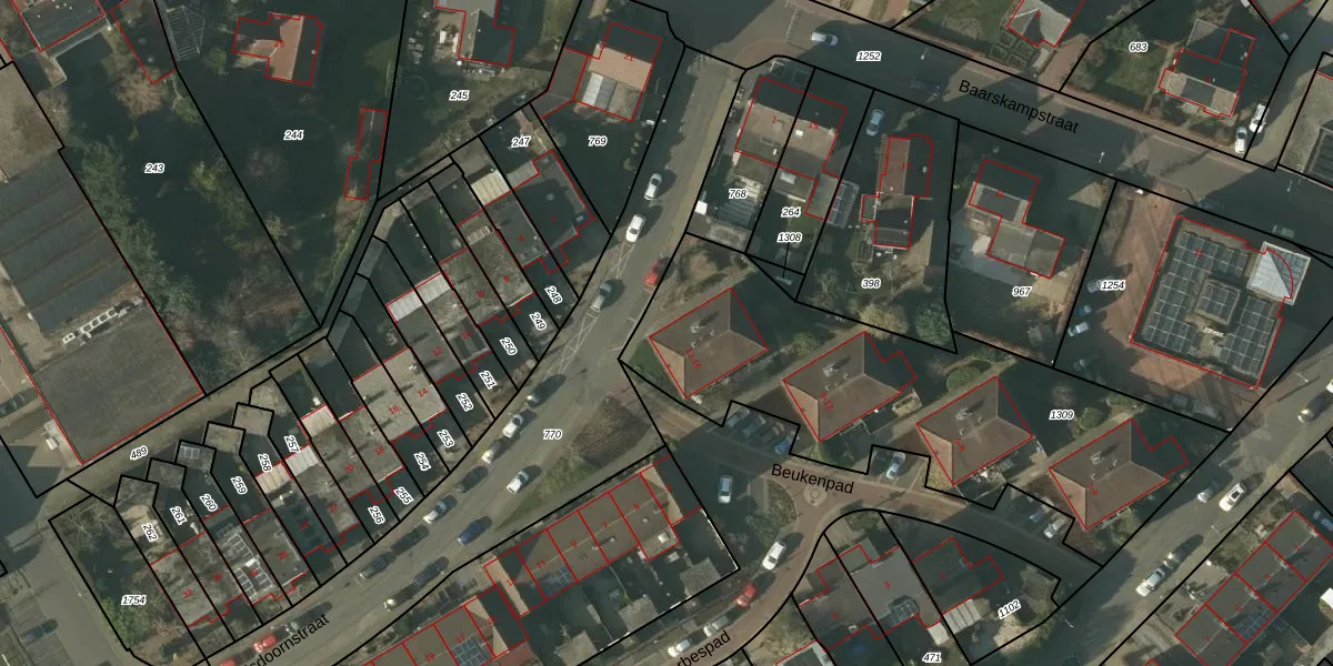 Het perceel waarop Beukenpad 14 staat heeft een oppervlakte van 1780 m². Dit is een zeer groot perceel. De perceeloppervlakte wordt geregistreerd door het Kadaster. Gedetailleerde informatie over de maten van dit perceel kunt u vinden in het rapport Kadastrale kaart met maatvoering van Beukenpad 14.
