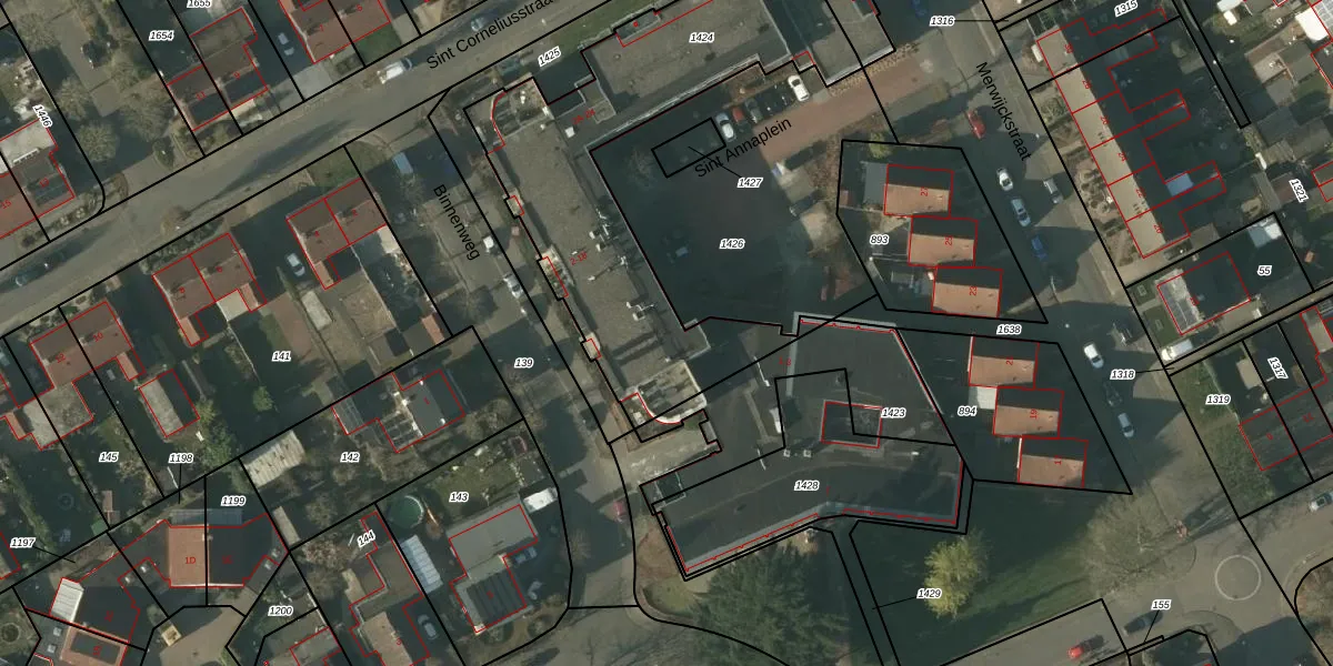 Het perceel waarop Binnenweg 16 staat heeft een oppervlakte van 1443 m². Dit is een zeer groot perceel. De perceeloppervlakte wordt geregistreerd door het Kadaster. Gedetailleerde informatie over de maten van dit perceel kunt u vinden in het rapport Kadastrale kaart met maatvoering van Binnenweg 16.
