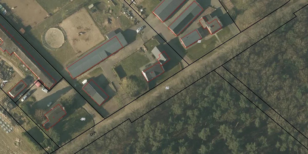 Het perceel waarop Dijk 4 staat heeft een oppervlakte van 2,8 ha. Dit is een zeer groot perceel. De perceeloppervlakte wordt geregistreerd door het Kadaster. Gedetailleerde informatie over de maten van dit perceel kunt u vinden in het rapport Kadastrale kaart met maatvoering van Dijk 4.
