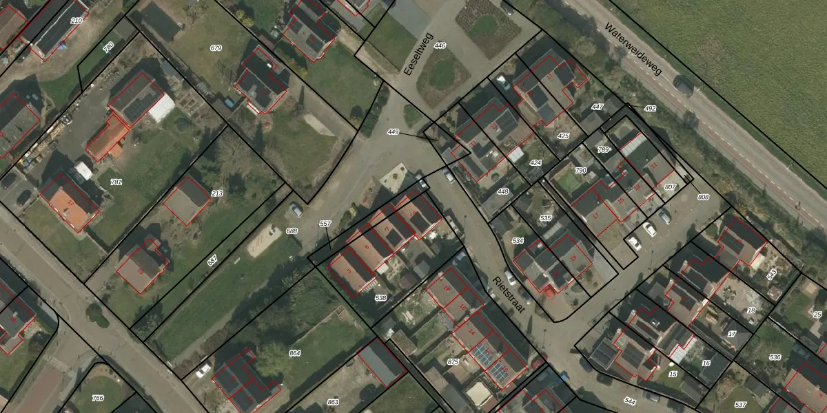 Het perceel waarop Eeseltweg 9 staat heeft een oppervlakte van 566 m². Dit is een groot perceel. De perceeloppervlakte wordt geregistreerd door het Kadaster. Gedetailleerde informatie over de maten van dit perceel kunt u vinden in het rapport Kadastrale kaart met maatvoering van Eeseltweg 9.
