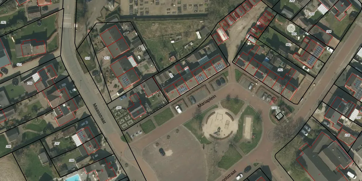 Het perceel waarop Mariaplein 22 staat heeft een oppervlakte van 700 m². Dit is een groot perceel. De perceeloppervlakte wordt geregistreerd door het Kadaster. Gedetailleerde informatie over de maten van dit perceel kunt u vinden in het rapport Kadastrale kaart met maatvoering van Mariaplein 22.