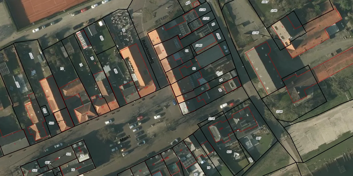 Het perceel waarop Markt 13 staat heeft een oppervlakte van 320 m². Dit is een groot perceel. De perceeloppervlakte wordt geregistreerd door het Kadaster. Gedetailleerde informatie over de maten van dit perceel kunt u vinden in het rapport Kadastrale kaart met maatvoering van Markt 13.