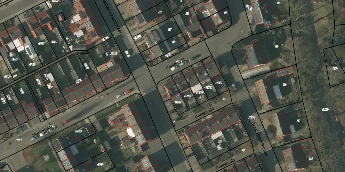 Perkerveld 16 is gelegen op kadastraal perceel KSL00E1632. Deze kadastrale aanduiding is uniek en wordt gebruikt door het Kadaster om eigendomsrechten en andere zakelijke rechten vast te leggen. Het perceel maakt onderdeel uit van de kadastrale gemeente Kessel.