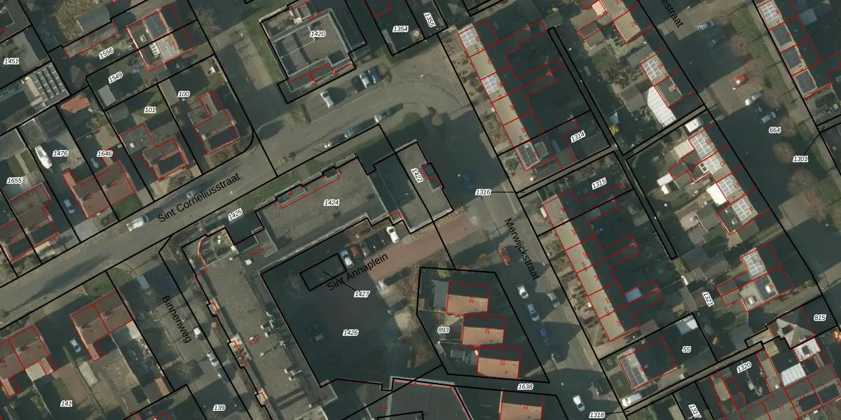 Het perceel waarop Sint Corneliusstraat 2-D staat heeft een oppervlakte van 1443 m². Dit is een zeer groot perceel. De perceeloppervlakte wordt geregistreerd door het Kadaster. Gedetailleerde informatie over de maten van dit perceel kunt u vinden in het rapport Kadastrale kaart met maatvoering van Sint Corneliusstraat 2-D.