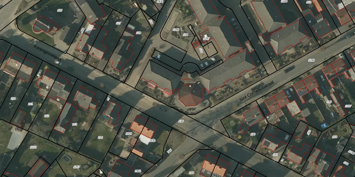 Het perceel waarop Sint Corneliusstraat 21 staat heeft een oppervlakte van 2910 m². Dit is een zeer groot perceel. De perceeloppervlakte wordt geregistreerd door het Kadaster. Gedetailleerde informatie over de maten van dit perceel kunt u vinden in het rapport Kadastrale kaart met maatvoering van Sint Corneliusstraat 21.