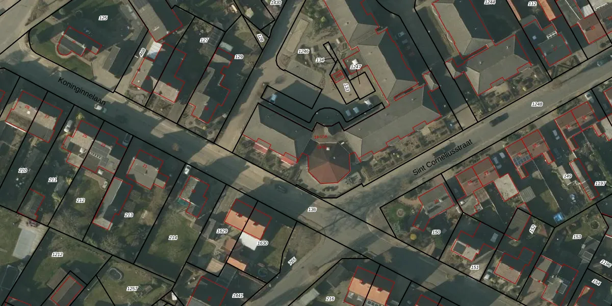 Het perceel waarop Sint Corneliusstraat 39 staat heeft een oppervlakte van 2910 m². Dit is een zeer groot perceel. De perceeloppervlakte wordt geregistreerd door het Kadaster. Gedetailleerde informatie over de maten van dit perceel kunt u vinden in het rapport Kadastrale kaart met maatvoering van Sint Corneliusstraat 39.