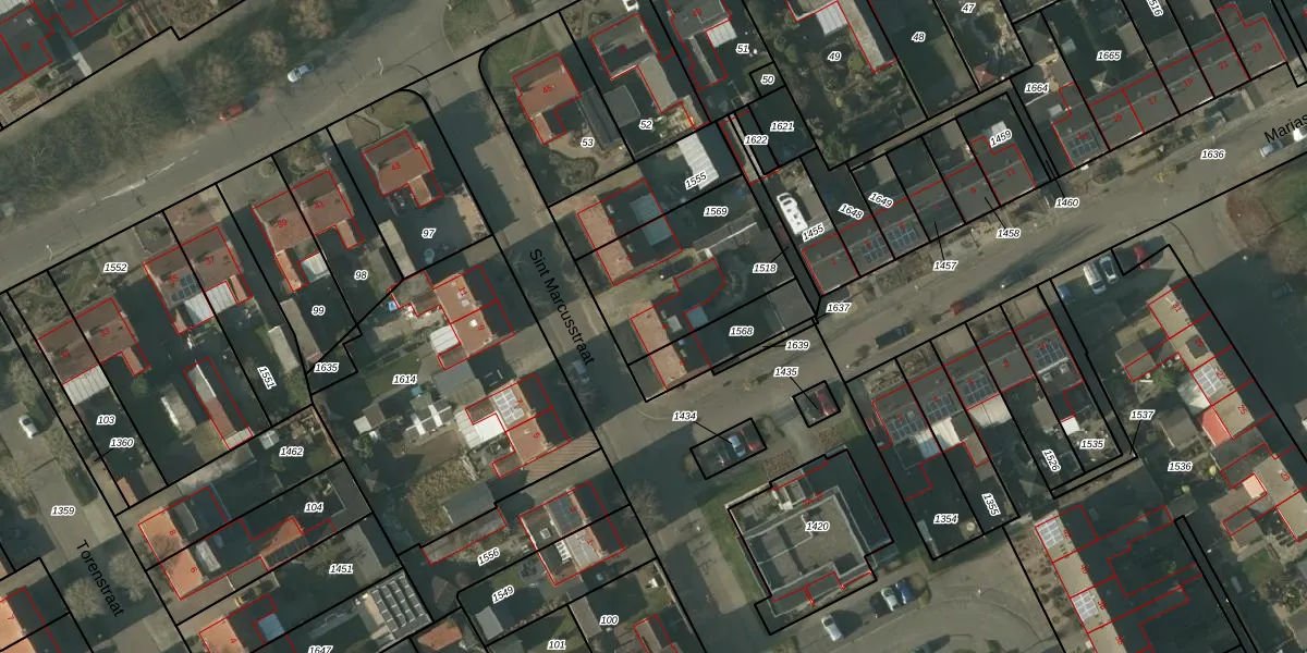 Het perceel waarop Sint Marcusstraat 4 staat heeft een oppervlakte van 525 m². Dit is een groot perceel. De perceeloppervlakte wordt geregistreerd door het Kadaster. Gedetailleerde informatie over de maten van dit perceel kunt u vinden in het rapport Kadastrale kaart met maatvoering van Sint Marcusstraat 4.