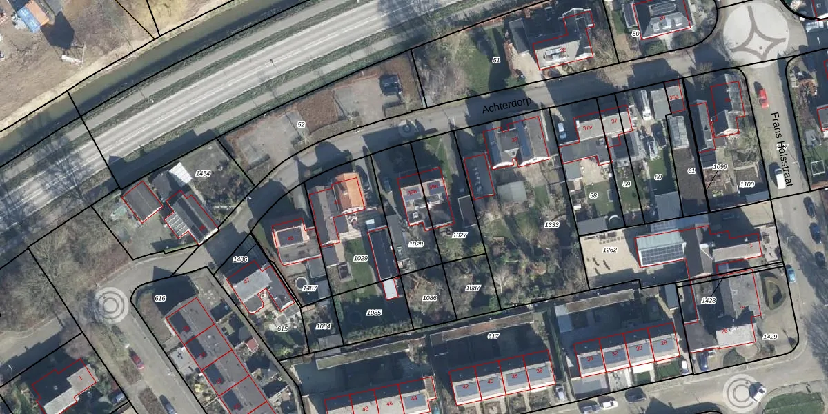 Achterdorp 39-b is gelegen op kadastraal perceel KTR00E1028. Deze kadastrale aanduiding is uniek en wordt gebruikt door het Kadaster om eigendomsrechten en andere zakelijke rechten vast te leggen. Het perceel maakt onderdeel uit van de kadastrale gemeente Kesteren.