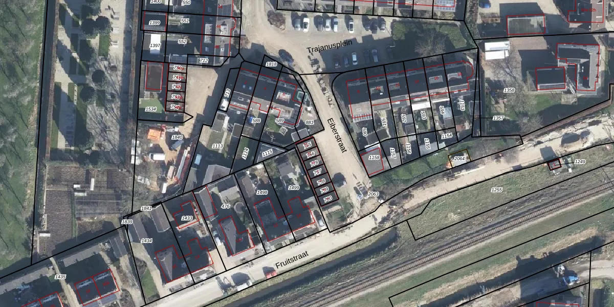 Het perceel waarop het adres ligt is KTR00-E-756. De afkorting 'KTR00' staat voor kadastrale gemeente Kesteren. Het perceel is 19 m² groot. Dat is kleiner dan de gemiddelde perceeloppervlakte in Kesteren, dat op 2786,08 m² ligt. Het grootste perceel in de kadastrale gemeente is 19,2 ha. Het kleinste perceel heeft een oppervlakte van 0 m². Er zijn geen andere adressen aanwezig op het perceel. De huidige grenzen van het perceel zijn digitaal in de Basisregistratie Kadaster (BRK) geregistreerd op 19-09-2002.