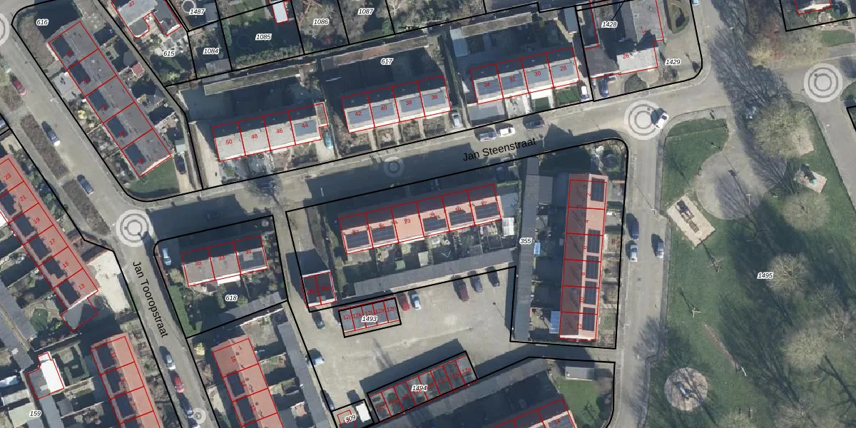 Het perceel waarop Jan Steenstraat 21 staat heeft een oppervlakte van 2450 m². Dit is een zeer groot perceel. De perceeloppervlakte wordt geregistreerd door het Kadaster. Gedetailleerde informatie over de maten van dit perceel kunt u vinden in het rapport Kadastrale kaart met maatvoering van Jan Steenstraat 21.