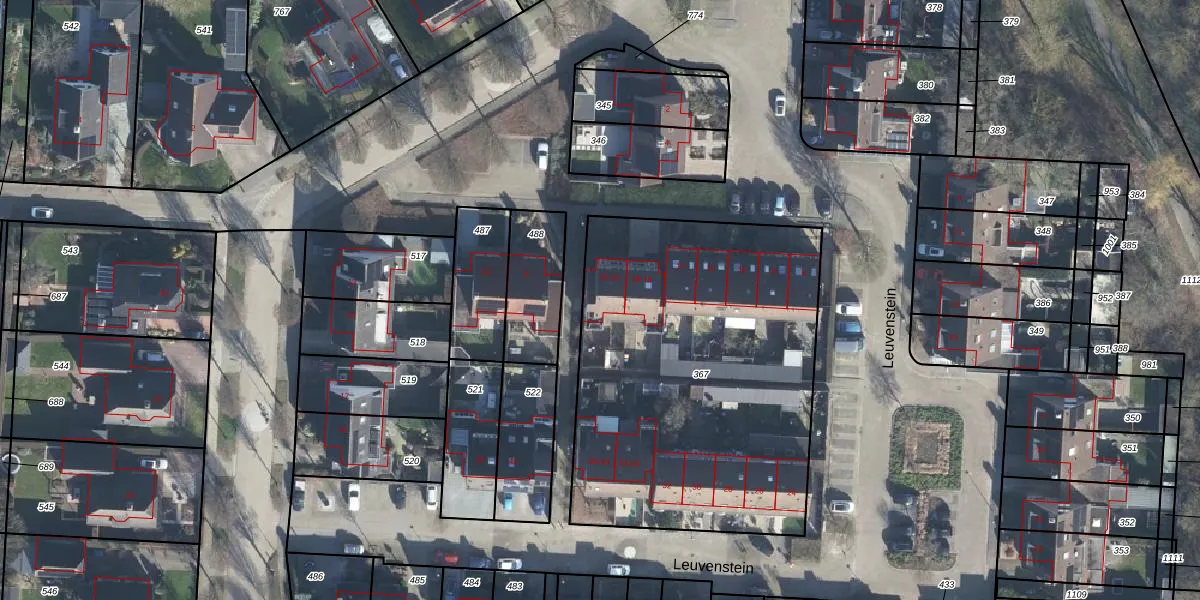 Het perceel waarop Leuvenstein 22 staat heeft een oppervlakte van 1996 m². Dit is een zeer groot perceel. De perceeloppervlakte wordt geregistreerd door het Kadaster. Gedetailleerde informatie over de maten van dit perceel kunt u vinden in het rapport Kadastrale kaart met maatvoering van Leuvenstein 22.