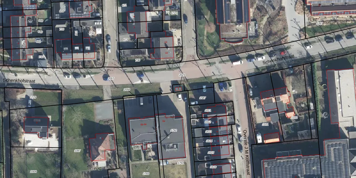 Schenkhofstraat 8 is gelegen op kadastraal perceel KTR00E2023. Deze kadastrale aanduiding is uniek en wordt gebruikt door het Kadaster om eigendomsrechten en andere zakelijke rechten vast te leggen. Het perceel maakt onderdeel uit van de kadastrale gemeente Kesteren.