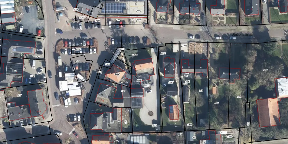 Het perceel waarop Stationsstraat 2 staat heeft een oppervlakte van 1199 m². Dit is een zeer groot perceel. De perceeloppervlakte wordt geregistreerd door het Kadaster. Gedetailleerde informatie over de maten van dit perceel kunt u vinden in het rapport Kadastrale kaart met maatvoering van Stationsstraat 2.
