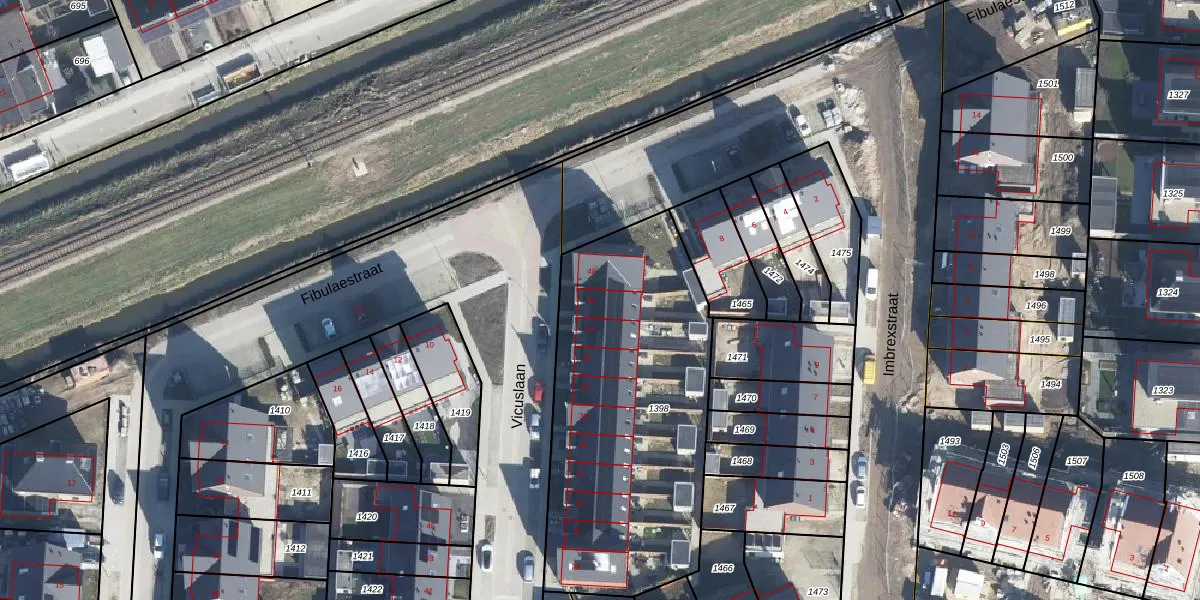Het perceel waarop Vicuslaan 46 staat heeft een oppervlakte van 1495 m². Dit is een zeer groot perceel. De perceeloppervlakte wordt geregistreerd door het Kadaster. Gedetailleerde informatie over de maten van dit perceel kunt u vinden in het rapport Kadastrale kaart met maatvoering van Vicuslaan 46.